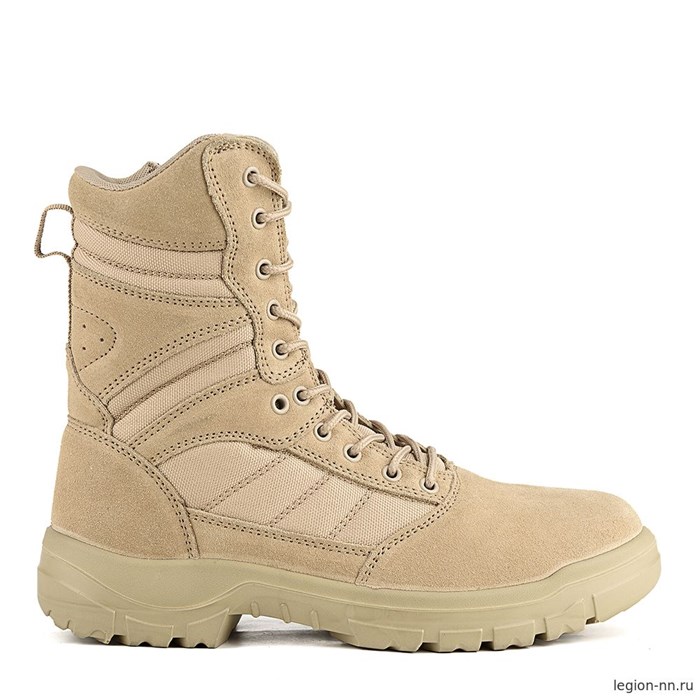 Ботинки 8139 (Песок) Универсальные ботинки-берцы литьевого метода крепления, подходят для силовых структур, активного отдыха, охоты, повседневной носки. С внутренней стороны ботинка предусмотрена застежка-молния для быстрого обувания/разувания, что экономит время. А высокая шнуровка позволит вам адаптировать ширину берец под индивидуальные особенности голени. Верх ботинок изготовлен из натуральной кожи (спилок-велюр) с водоотталкивающим покрытием, комбинированный с прочным, водоотталкивающим текстилем. Подкладка и вкладная стелька выполнены из текстильного материала с высокими показателями гигроскопичности. Подошва из ПУ имеет высокие характеристики прочности и износостойкости. Глубокий протектор ходового слоя подошвы обеспечивает хорошую сцепляемость с поверхностью.