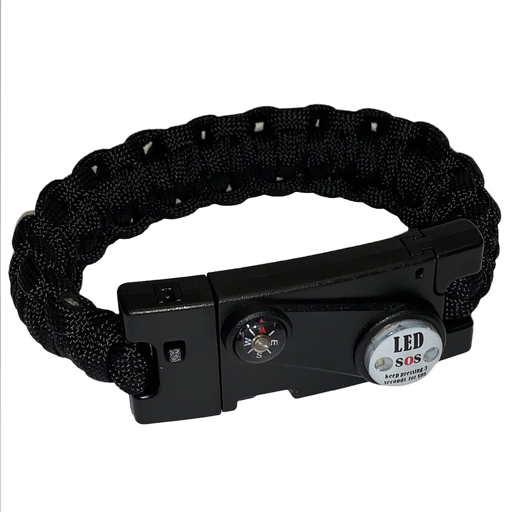Удобный браслет тактического назначения с необходимыми для выживания в экстремальных условиях функциями и инструментами.