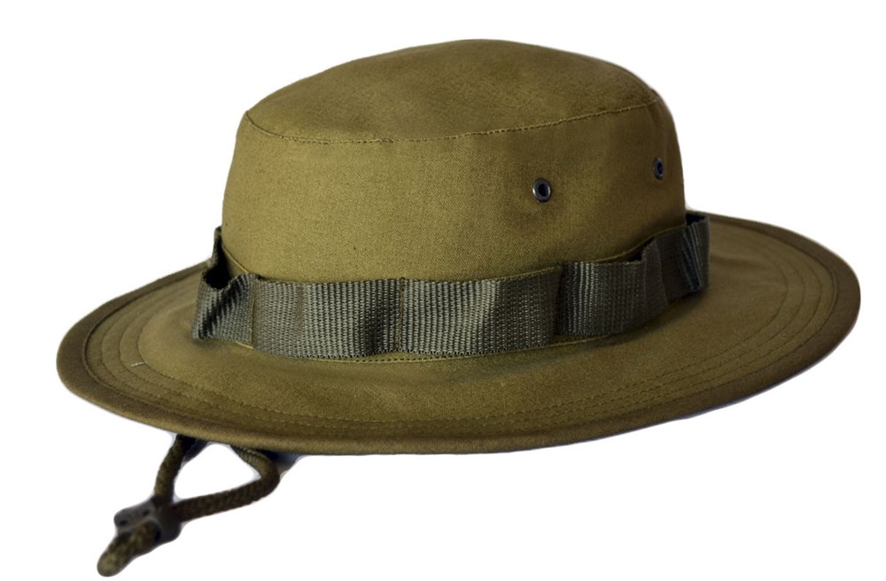 По окружности головы на панаме пришита стропа, образующая ячейки для размещения элементов растительности в целях дополнительной маскировки.